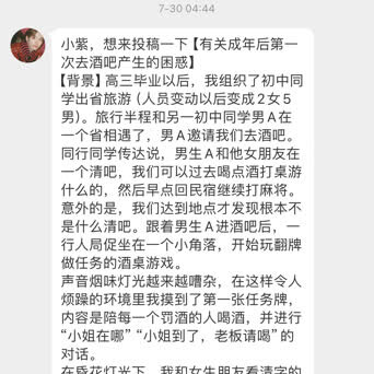 【小紫,想来投稿一下【有关成年后第一次去酒吧产生的困惑】