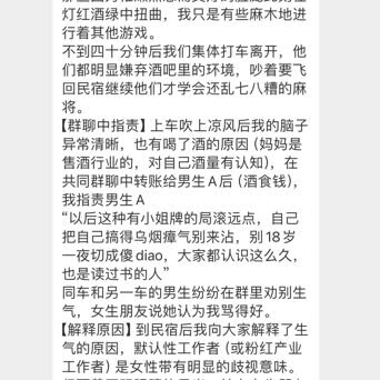 【群聊中指责】上车吹上凉风后我的脑子异常清晰,也有喝了酒的原因(妈妈是售酒行业的,对自己酒量有认知),在共同群聊中转账给男生A后(酒食钱),我指责男生A