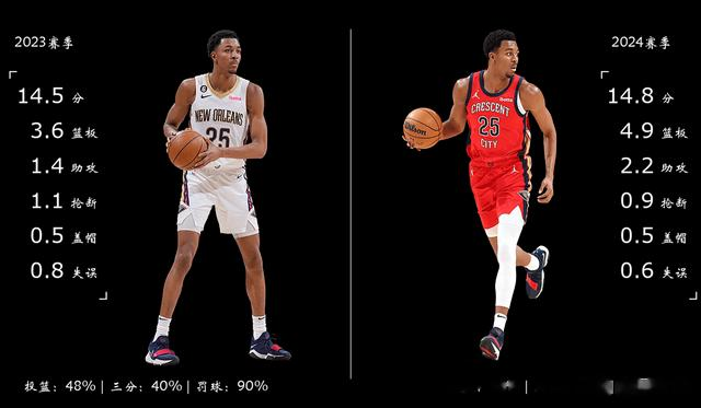 抢断纪录:3,2024-02-14鹈鹕战胜奇才,全场贡献13分5篮板3助攻2盖帽3抢断。
