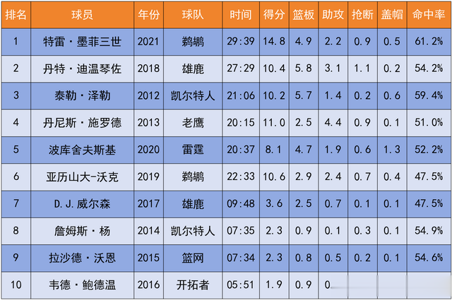 对比最近十年17号秀第3个赛季的表现,墨菲三世排名第1。